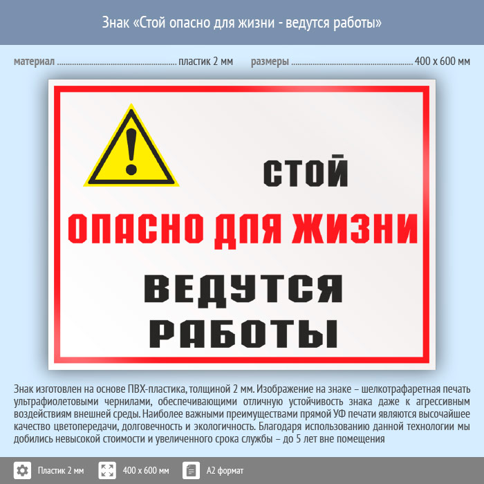Знак «Стой опасно для жизни - ведутся работы», КЗ-86 (пластик, 600х400 мм) в Альметьевске купить