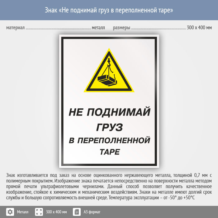 Знак «Не поднимай груз в переполненной таре», КЗ-26 (металл, 300х400 мм) в Альметьевске купить