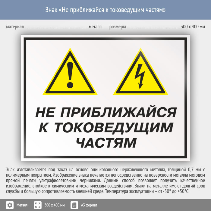 Знак «Не приближайся к токоведущим частям», КЗ-29 (металл, 400х300 мм) в Альметьевске купить