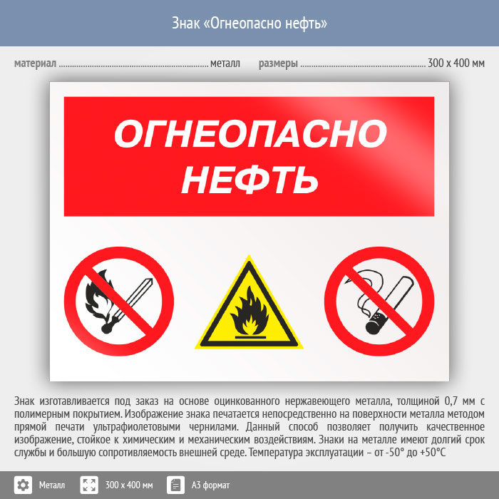 Знак «Огнеопасно нефть», КЗ-31 (металл, 400х300 мм) в Альметьевске купить