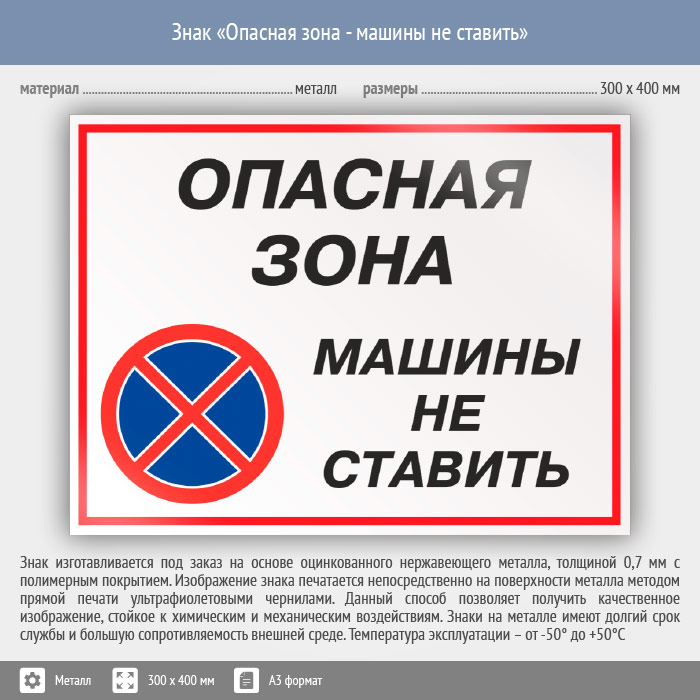 Знак «Опасная зона - машины не ставить», КЗ-32 (металл, 400х300 мм) в Альметьевске купить