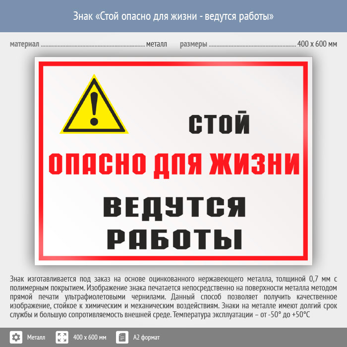 Знак «Стой опасно для жизни - ведутся работы», КЗ-86 (металл, 600х400 мм) в Альметьевске купить