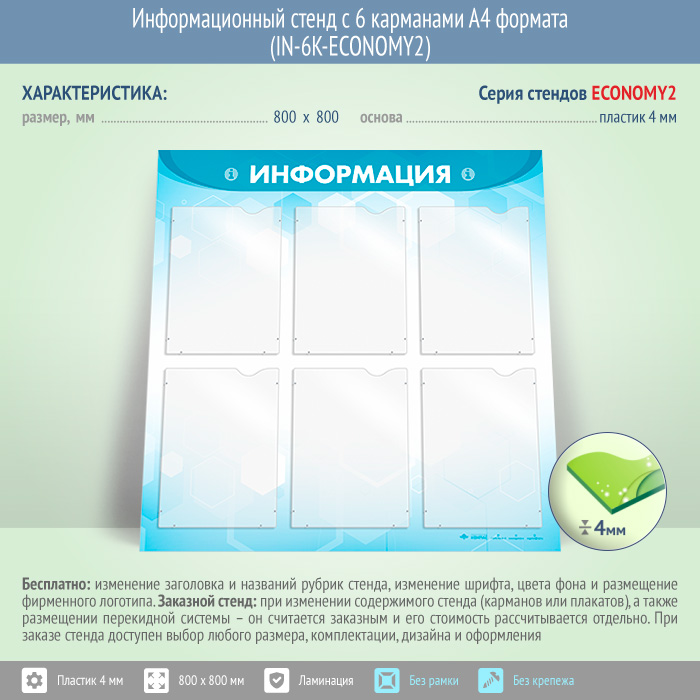 Информационный стенд с 6 карманами А4 формата (IN-6K-ECONOMY2) в Альметьевске купить