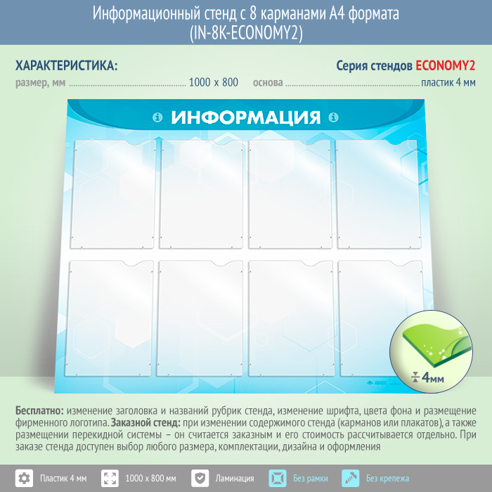 Информационный стенд с 8 карманами А4 формата (IN-8K-ECONOMY2) в Альметьевске купить