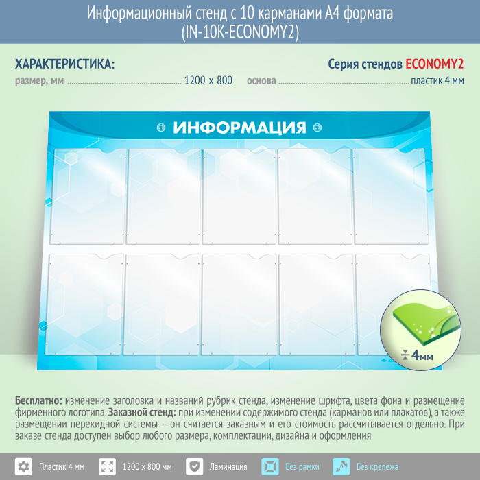Информационный стенд с 10 карманами А4 формата (IN-10K-ECONOMY2) в Альметьевске купить