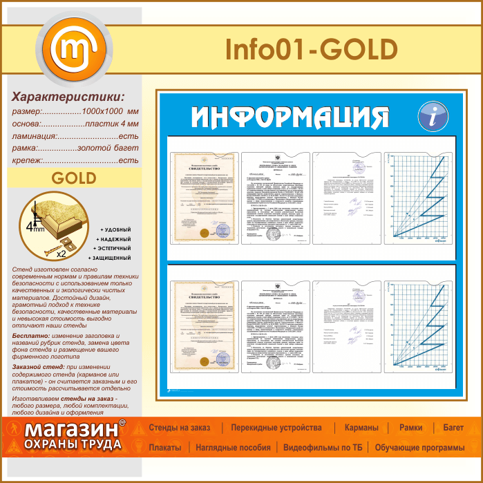 Стенд «Информация» с 8 карманами А4 формата (IN-01-GOLD) в Альметьевске купить