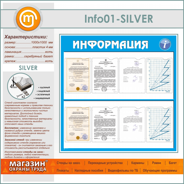 Стенд «Информация» с 8 карманами А4 формата (IN-01-SILVER) в Альметьевске купить