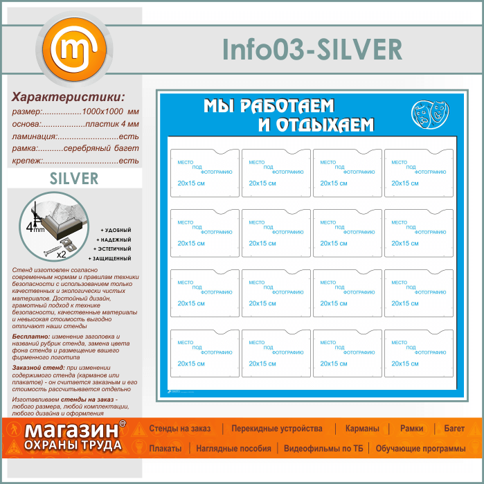 Стенд «Мы работаем и отдыхаем» с 16 карманами А5 формата (IN-03-SILVER) в Альметьевске купить