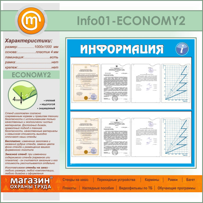 Стенд «Информация» с 8 карманами А4 формата (IN-01-ECONOMY2) в Альметьевске купить