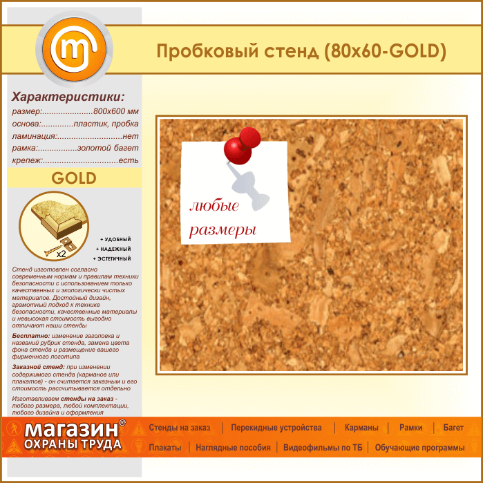 Пробковая доска, 80х60 см (IN-05-GOLD) в Альметьевске купить