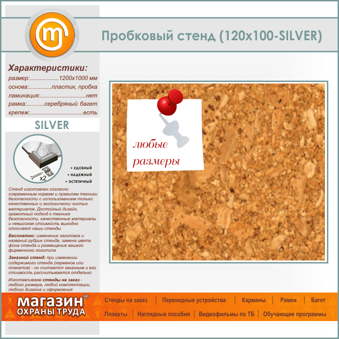 Пробковая доска, 120х100 см (IN-05-SILVER) в Альметьевске купить