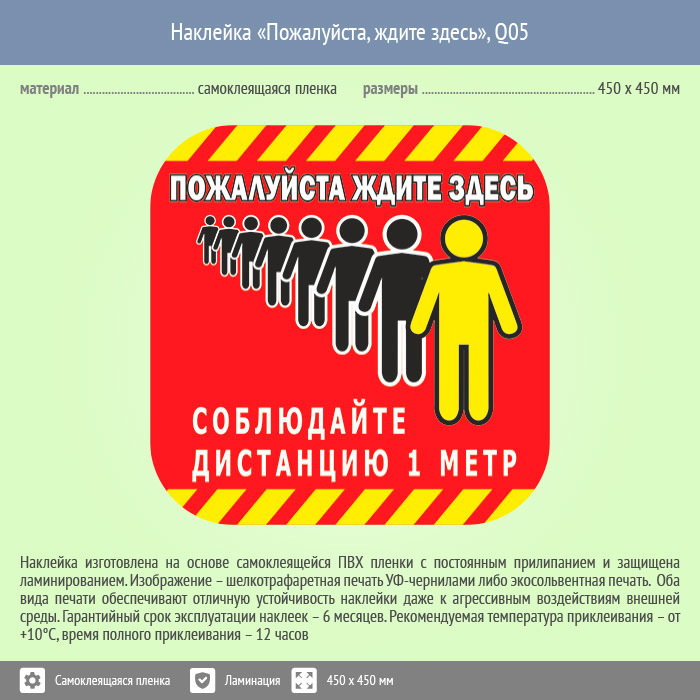 Наклейка на пол «Пожалуйста, ждите здесь», Q05 (пленка c ламинированием, 450х450 мм) в Альметьевске купить