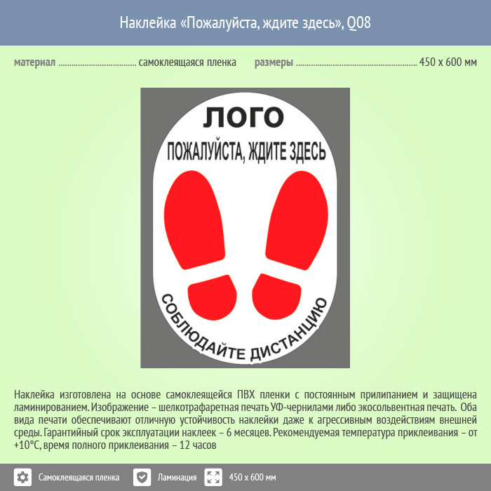 Наклейка на пол «Пожалуйста, ждите здесь», Q08 (пленка c ламинированием, 450х600 мм) в Альметьевске купить