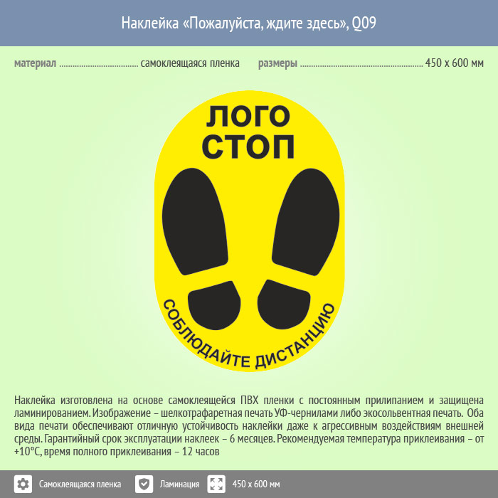 Наклейка на пол «Пожалуйста, ждите здесь», Q09 (пленка c ламинированием, 450х600 мм) в Альметьевске купить