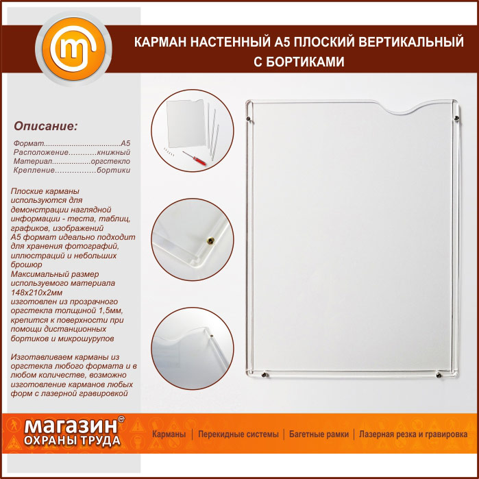 Карман настенный А5 плоский вертикальный с бортиками в Альметьевске купить