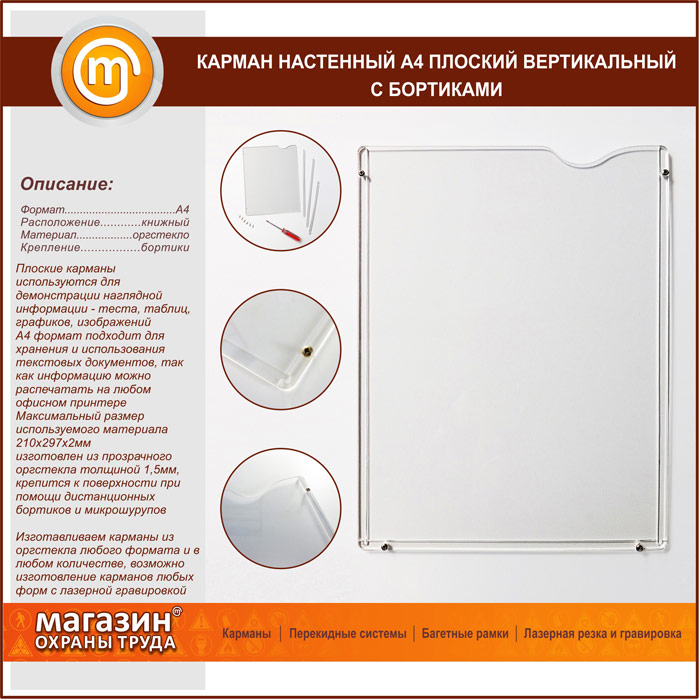 Карман настенный А4 плоский вертикальный с бортиками в Альметьевске купить