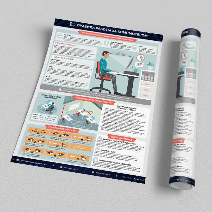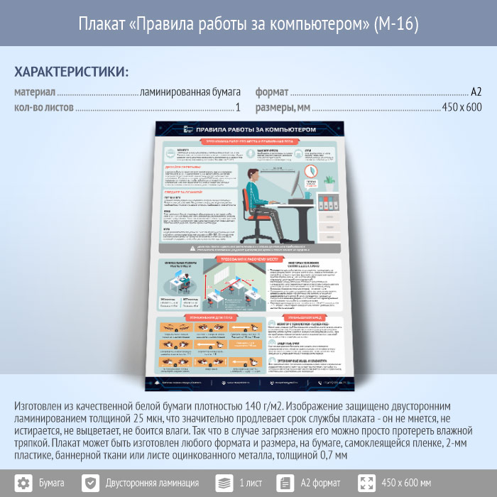 Плакат «Правила работы за компьютером» (М-16, ламинированная бумага, А2, 1 лист) в Альметьевске купить