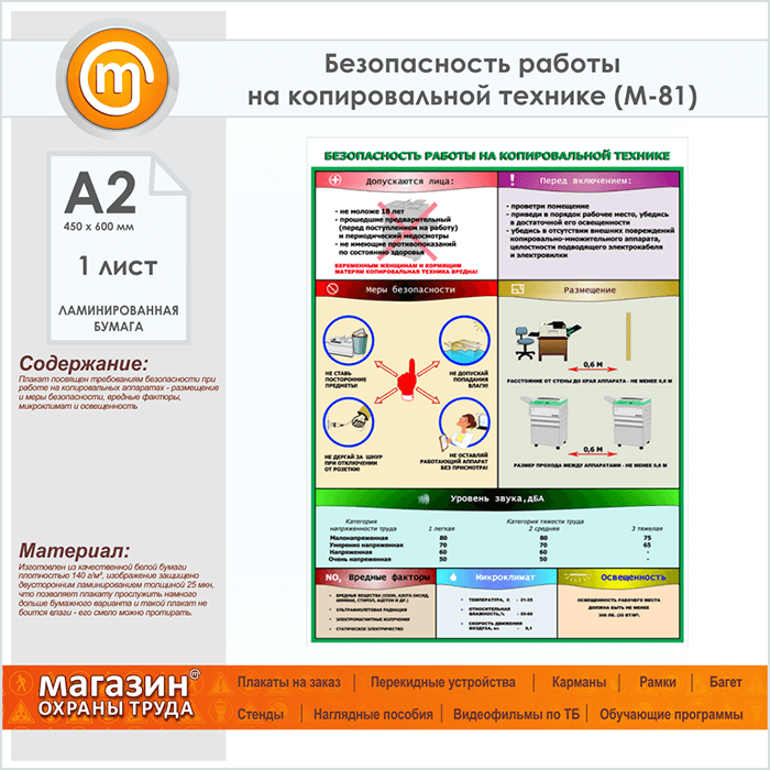 Плакат «Безопасность работы на копировальной технике» (М-81, ламинированная бумага, А2, 1 лист) в Альметьевске купить