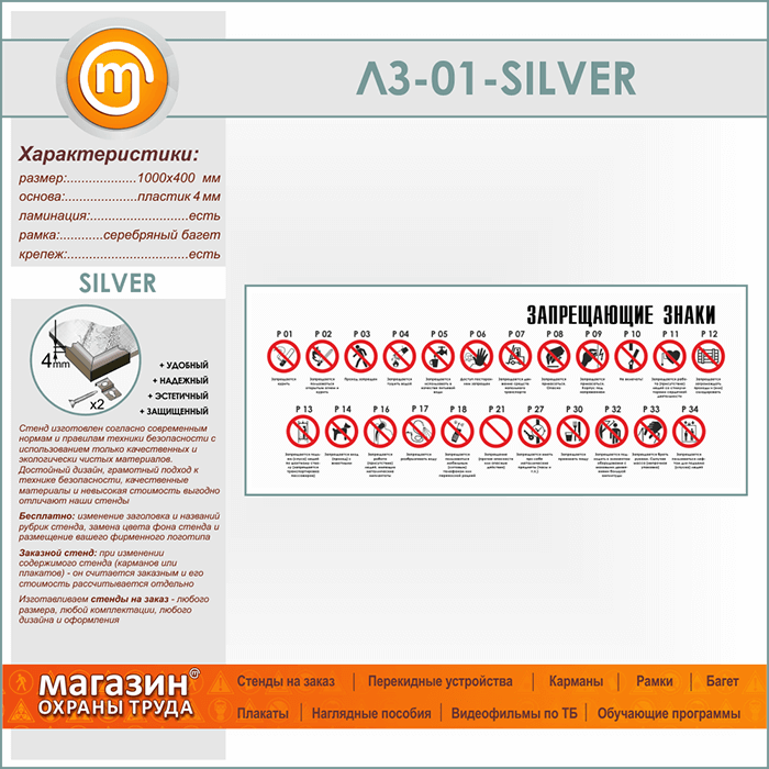Стенд «Запрещающие знаки» (LZ-01-SILVER) в Альметьевске купить