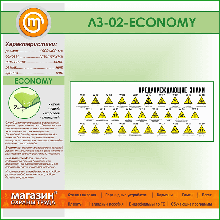 Стенд «Предупреждающие знаки» (LZ-02-ECONOMY) в Альметьевске купить