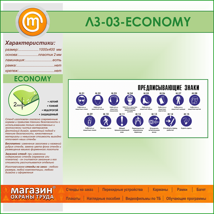 Стенд «Предписывающие знаки» (LZ-03-ECONOMY) в Альметьевске купить