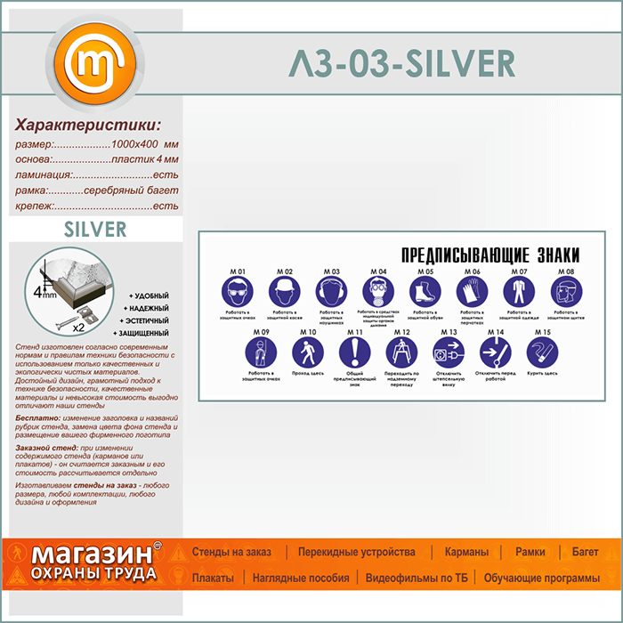 Стенд «Предписывающие знаки» (LZ-03-SILVER) в Альметьевске купить