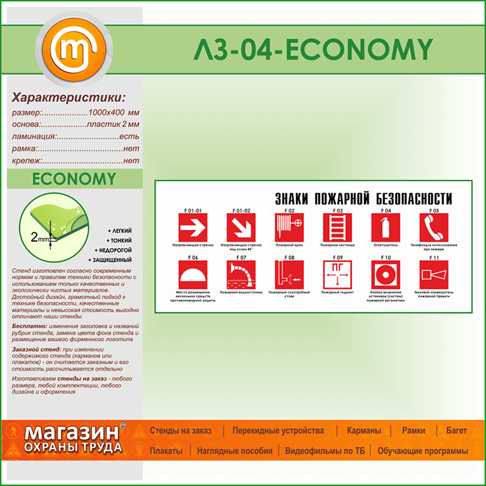 Стенд «Знаки пожарной безопасности» (LZ-04-ECONOMY) в Альметьевске купить