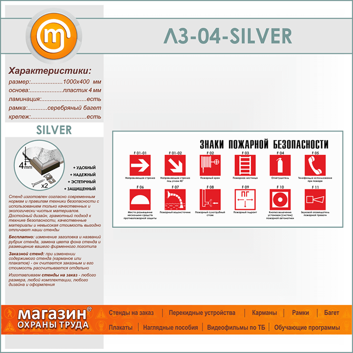 Стенд «Знаки пожарной безопасности» (LZ-04-SILVER) в Альметьевске купить