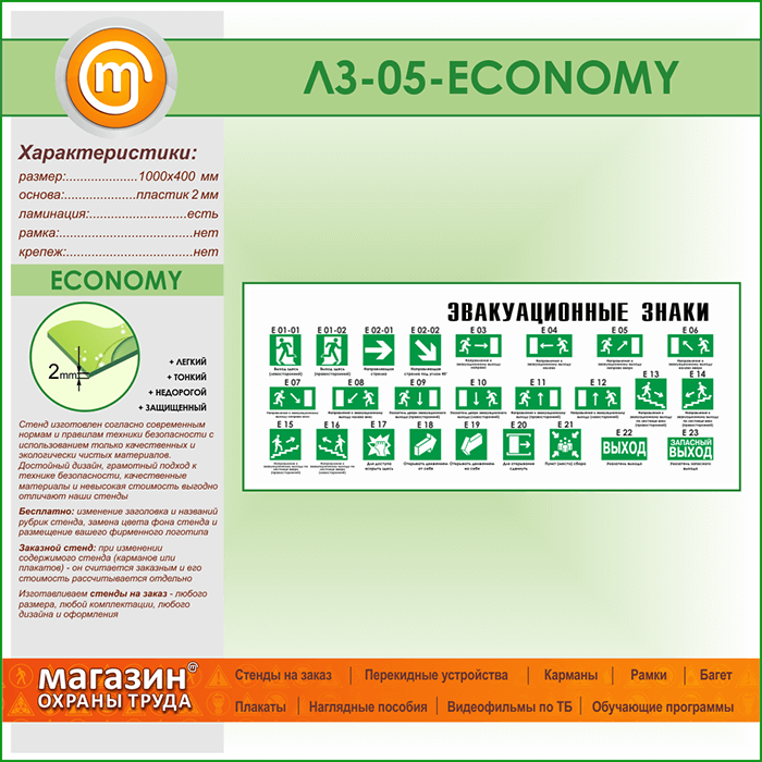 Стенд «Эвакуационные знаки» (LZ-05-ECONOMY) в Альметьевске купить