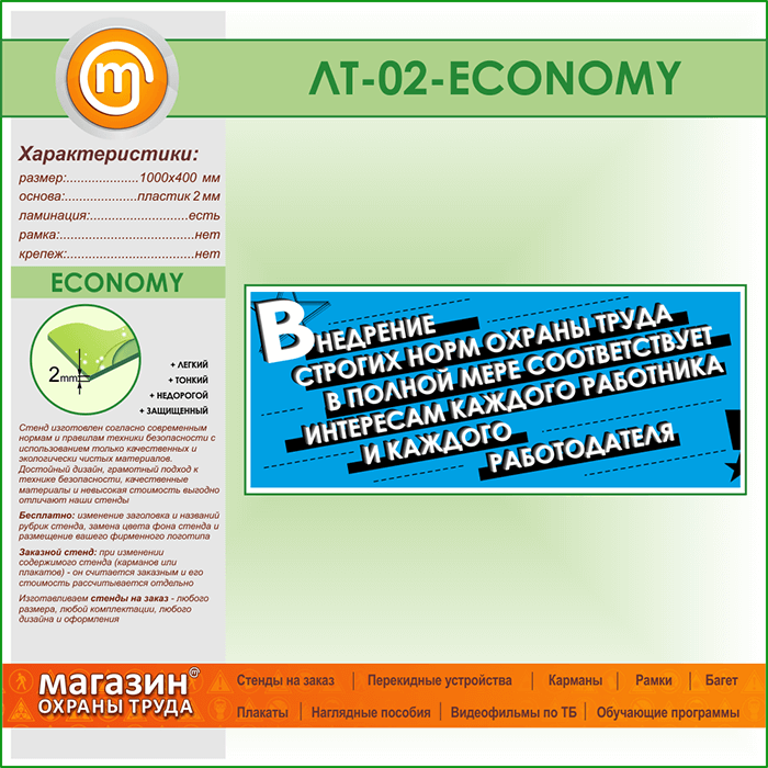 Лозунг «Внедрение строгих норм охраны труда...» (LT-02-ECONOMY) в Альметьевске купить