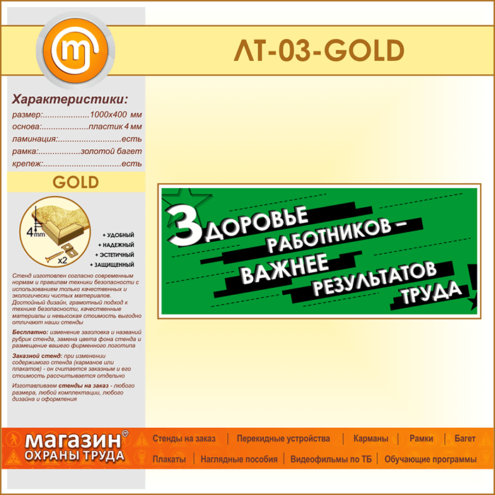 Лозунг «Здоровье работников - важнее результатов труда» (LT-03-GOLD) в Альметьевске купить
