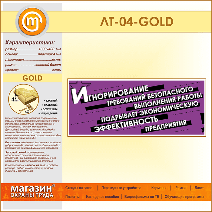 Лозунг «Игнорирование безопасного выполнения работы...» (LT-04-GOLD) в Альметьевске купить