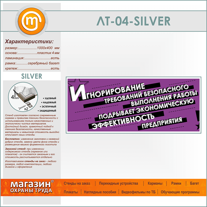 Лозунг «Игнорирование безопасного выполнения работы...» (LT-04-SILVER) в Альметьевске купить