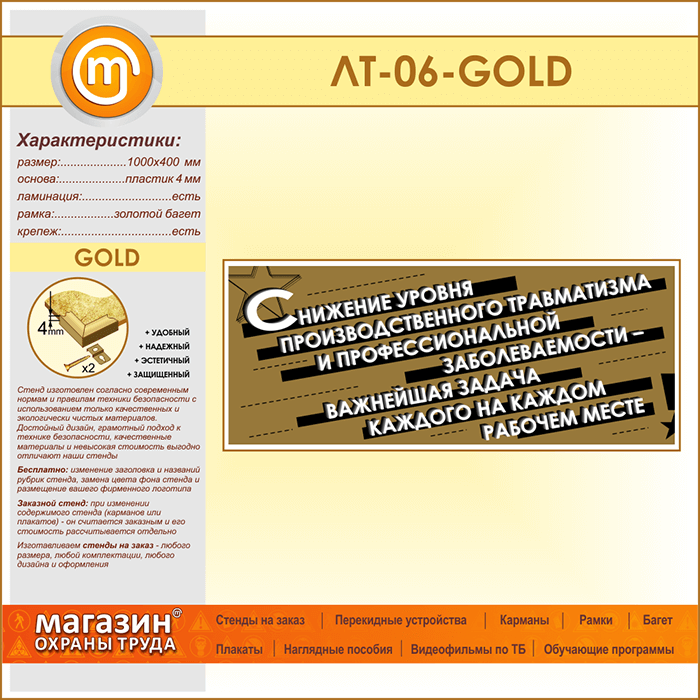Лозунг «Снижение уровня производственного травматизма...» (LT-06-GOLD) в Альметьевске купить