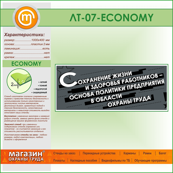 Лозунг «Сохранение жизни и здоровья работников...» (LT-07-ECONOMY) в Альметьевске купить