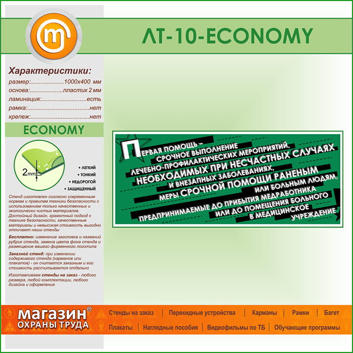 Лозунг «Первая помощь - срочное выполнение...» (LT-10-ECONOMY) в Альметьевске купить