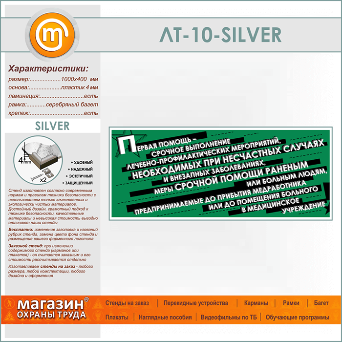 Лозунг «Первая помощь - срочное выполнение...» (LT-10-SILVER) в Альметьевске купить