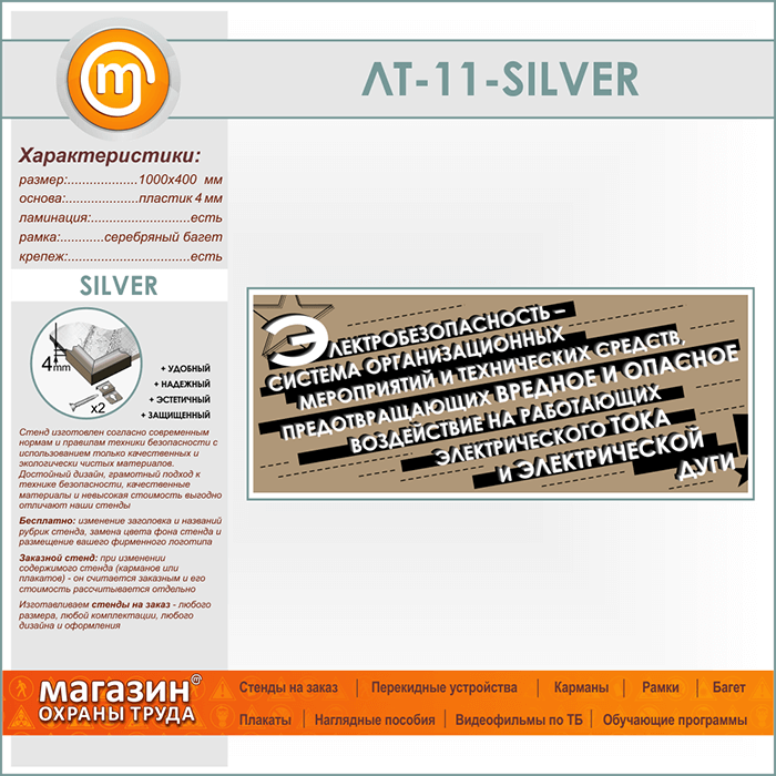Лозунг «Электробезопасность - система мероприятий...» (LT-11-SILVER) в Альметьевске купить