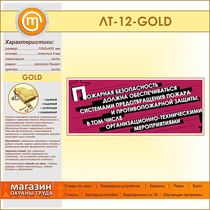 Лозунг «Пожарная безопасность должна обеспечиваться...» (LT-12-GOLD) в Альметьевске купить