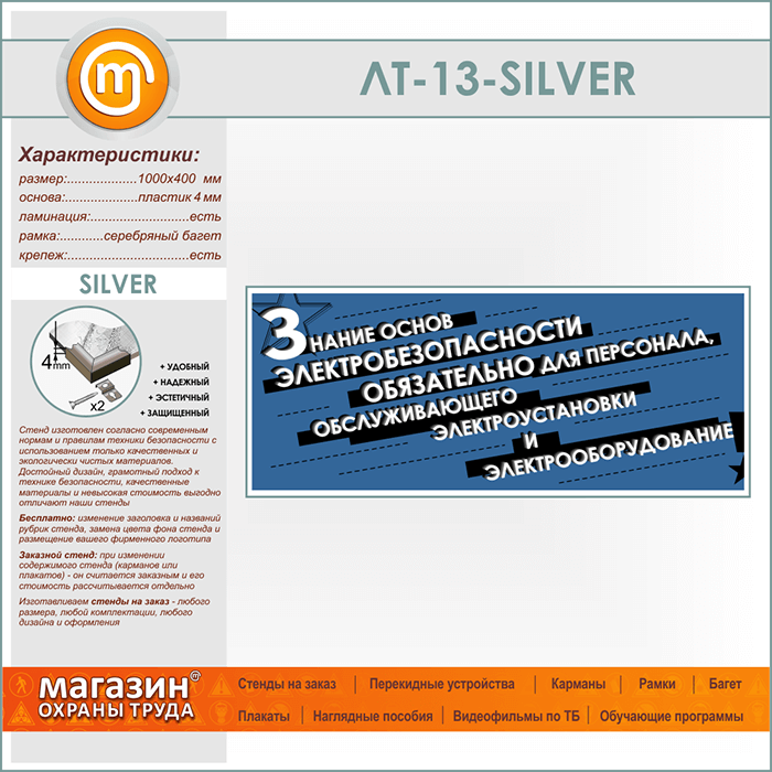 Лозунг «Знание основ электробезопасности обязательно...» (LT-13-SILVER) в Альметьевске купить