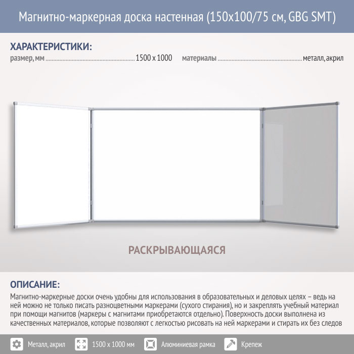 Магнитно-маркерная доска настенная (150x100/75 см, GBG SMT) в Альметьевске купить
