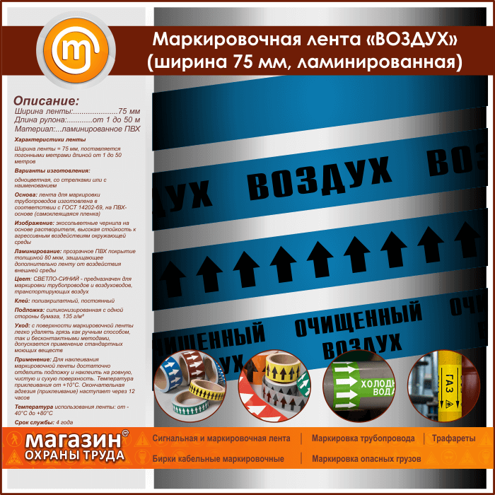 Маркировочная лента «ВОЗДУХ» (ширина 75 мм, самоклеящаяся плёнка с ламинированием) в Альметьевске купить