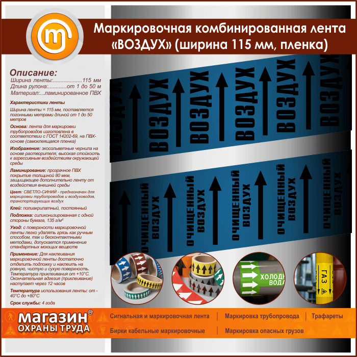 Маркировочная комбинированная лента «ВОЗДУХ» (ширина 115 мм, самоклеящаяся плёнка с ламинированием) в Альметьевске купить