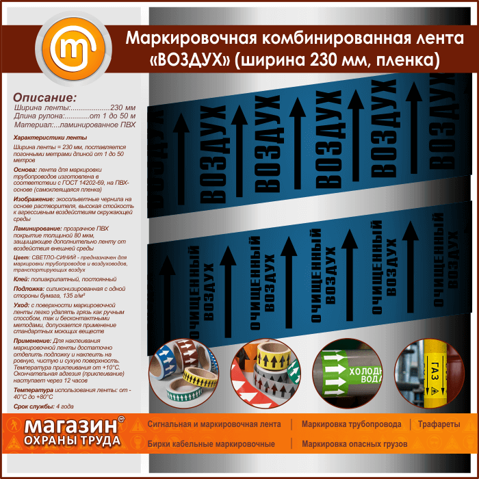 Маркировочная комбинированная лента «ВОЗДУХ» (ширина 230 мм, самоклеящаяся плёнка с ламинированием) в Альметьевске купить