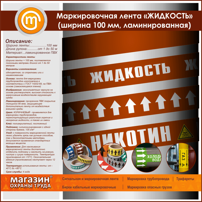 Маркировочная лента «ЖИДКОСТЬ» (ширина 100 мм, самоклеящаяся плёнка) в Альметьевске купить