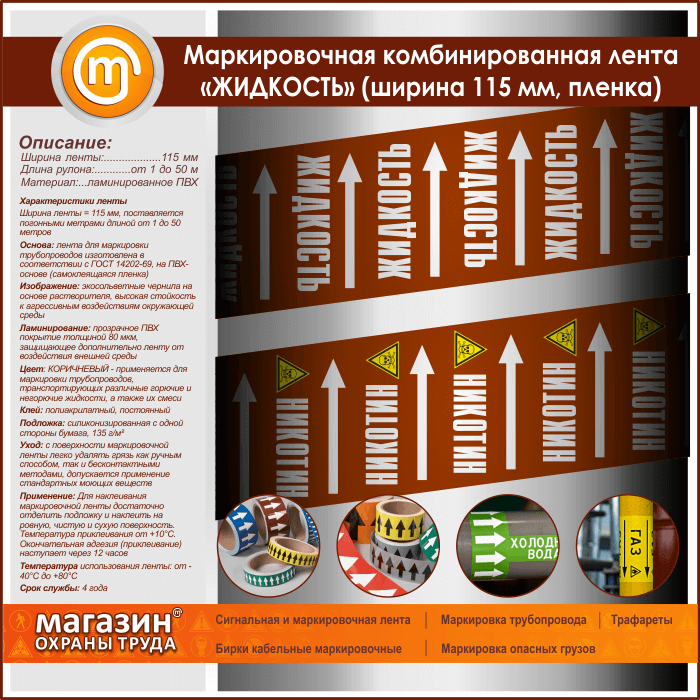 Маркировочная комбинированная лента «ЖИДКОСТЬ» (ширина 115 мм, самоклеящаяся плёнка) в Альметьевске купить