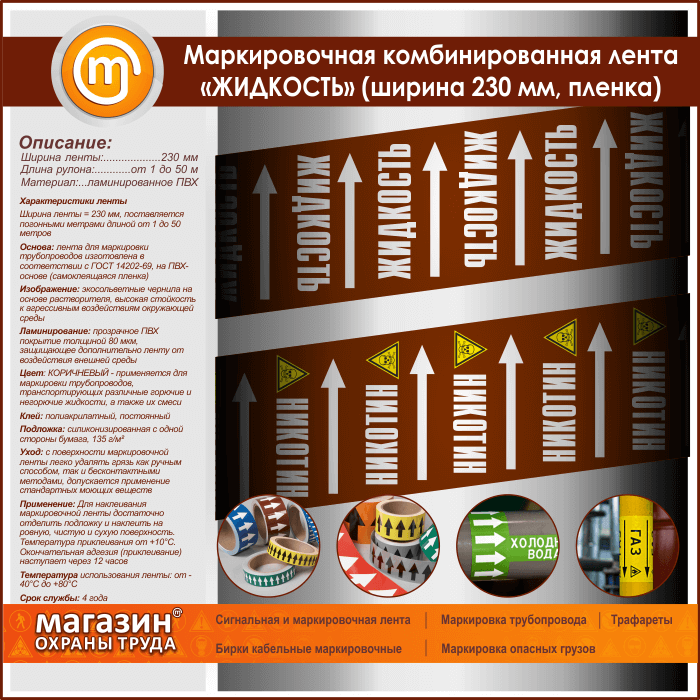 Маркировочная комбинированная лента «ЖИДКОСТЬ» (ширина 230 мм, самоклеящаяся плёнка с ламинированием) в Альметьевске купить