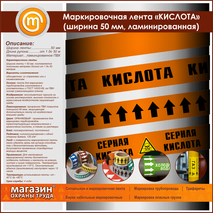 Маркировочная лента «КИСЛОТА» (ширина 50 мм, самоклеящаяся плёнка) в Альметьевске купить