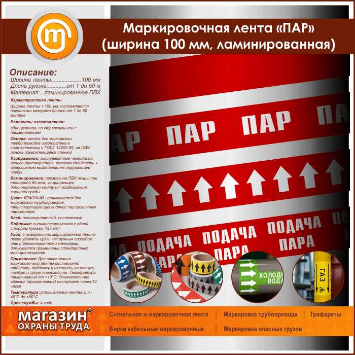 Маркировочная лента «ПАР» (ширина 100 мм, самоклеящаяся плёнка с ламинированием) в Альметьевске купить