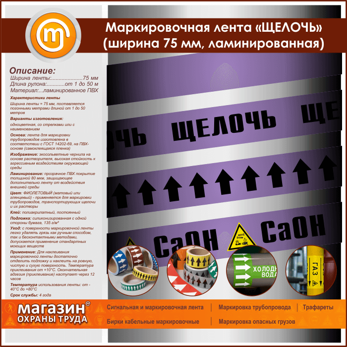 Маркировочная лента «ЩЕЛОЧЬ» (ширина 75 мм, самоклеящаяся плёнка) в Альметьевске купить